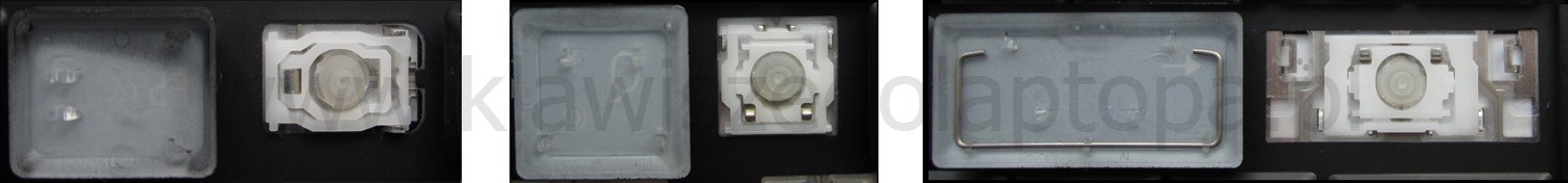 *Zdarza się, że w poszczególnych modelach klawiatury stosuje się więcej typów mocowań niż te trzy pokazane na zdjęciach; niektóre klawisze mają też metalowe zawiasy.