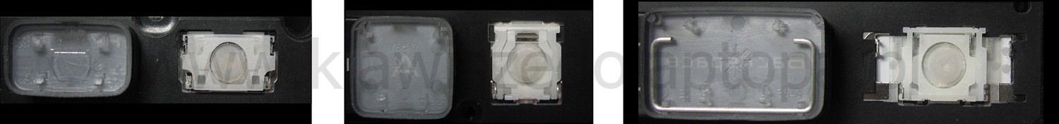 *Zdarza się, że w poszczególnych modelach klawiatury stosuje się więcej typów mocowań niż te trzy pokazane na zdjęciach; niektóre klawisze mają też metalowe zawiasy.