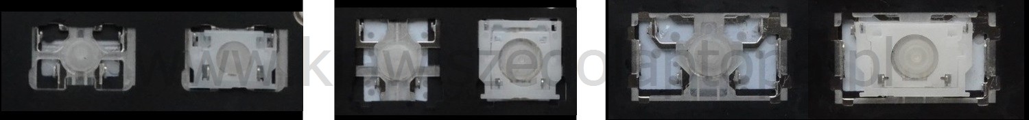 - W większości klawiatur wyglądających identycznie z zewnątrz stosowane były różne typy mocowań pod klawiszami.