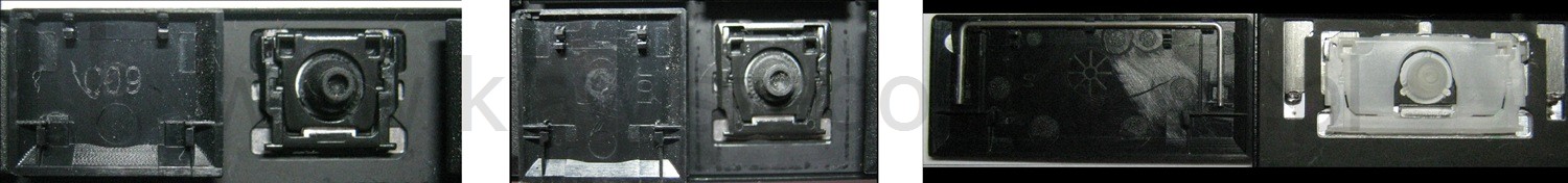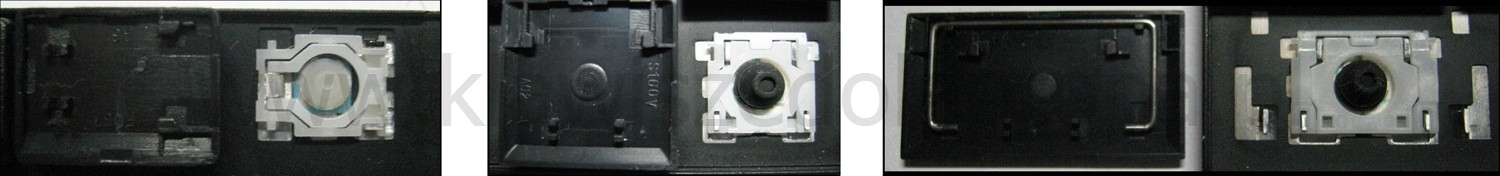 *Zdarza się, że w poszczególnych modelach klawiatury stosuje się więcej typów mocowań niż te trzy pokazane na zdjęciach; niektóre klawisze mają też metalowe zawiasy.