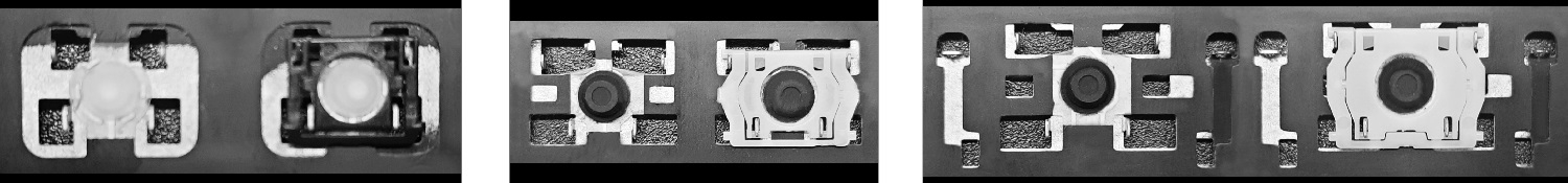 - W większości klawiatur wyglądających identycznie z zewnątrz stosowane były różne typy mocowań pod klawiszami.