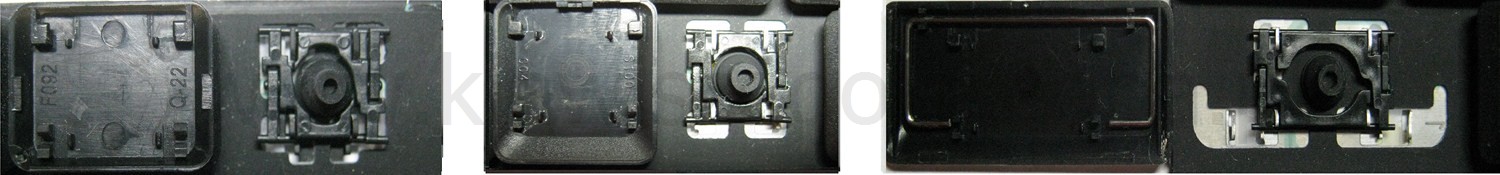 *Zdarza się, że w poszczególnych modelach klawiatury stosuje się więcej typów mocowań niż te trzy pokazane na zdjęciach; niektóre klawisze mają też metalowe zawiasy.