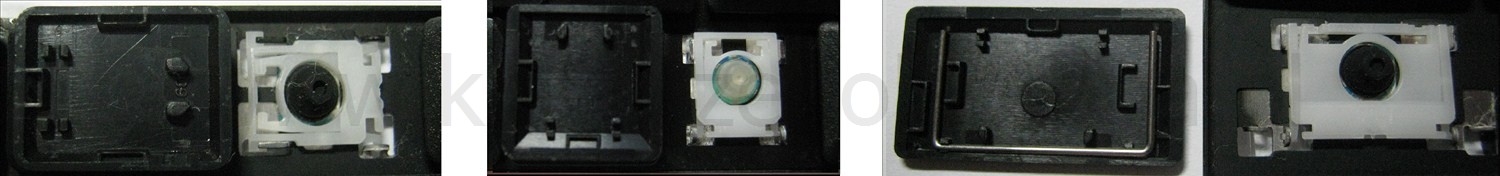 *Zdarza się, że w poszczególnych modelach klawiatury stosuje się więcej typów mocowań niż te trzy pokazane na zdjęciach; niektóre klawisze mają też metalowe zawiasy.