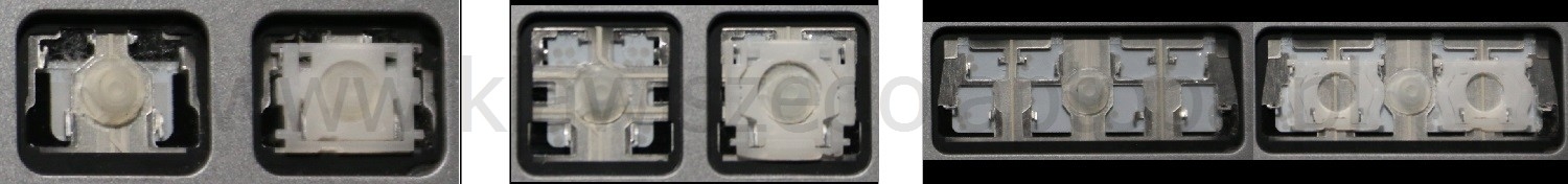 *Zdarza się, że w poszczególnych modelach klawiatury stosuje się więcej typów mocowań niż te trzy pokazane na zdjęciach; niektóre klawisze mają też metalowe zawiasy.