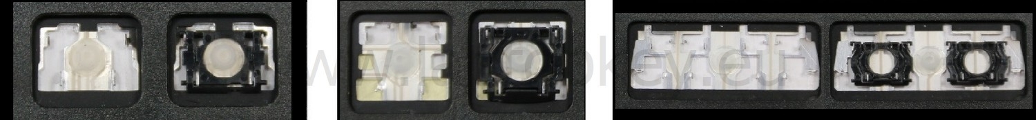 - Aby wybrać właściwy model, porównaj zdjęcie pustego miejsca na swojej klawiaturze ze zdjęciami poniżej, ewentualnie zdejmij klawisz „A” - pod nim zawsze jest zaczep średni.