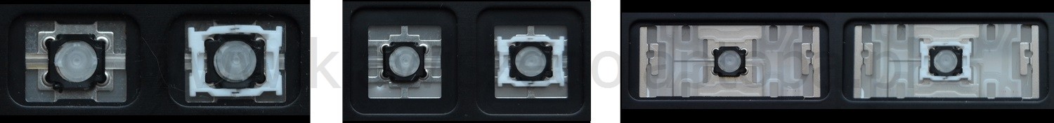 - W większości klawiatur wyglądających identycznie z zewnątrz stosowane były różne typy mocowań pod klawiszami.