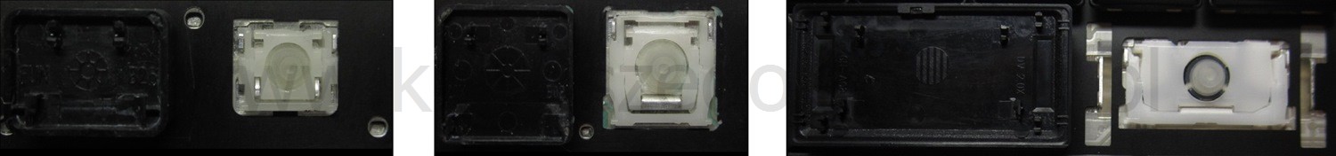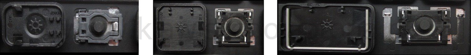 *Zdarza się, że w poszczególnych modelach klawiatury stosuje się więcej typów mocowań niż te trzy pokazane na zdjęciach; niektóre klawisze mają też metalowe zawiasy.
