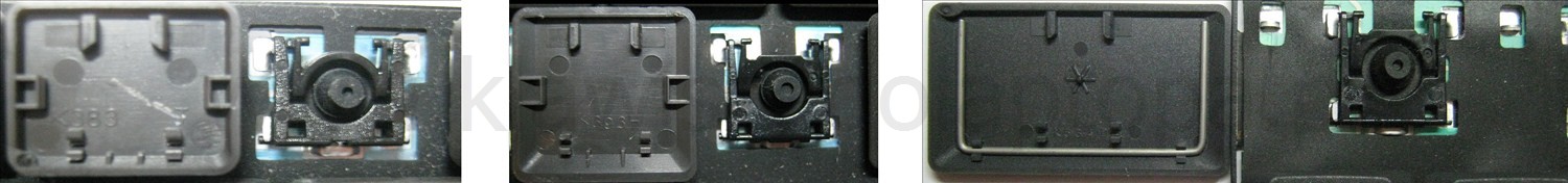 *Zdarza się, że w poszczególnych modelach klawiatury stosuje się więcej typów mocowań niż te trzy pokazane na zdjęciach; niektóre klawisze mają też metalowe zawiasy.