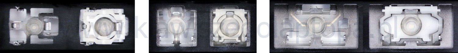 *Zdarza się, że w poszczególnych modelach klawiatury stosuje się więcej typów mocowań niż te trzy pokazane na zdjęciach; niektóre klawisze mają też metalowe zawiasy.