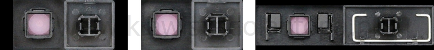 *Zdarza się, że w poszczególnych modelach klawiatury stosuje się więcej typów mocowań niż te trzy pokazane na zdjęciach; niektóre klawisze mają też metalowe zawiasy.