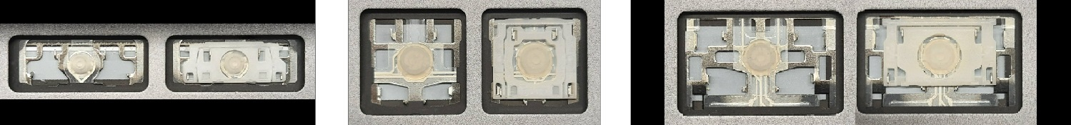 *Zdarza się, że w poszczególnych modelach klawiatury stosuje się więcej typów mocowań niż te trzy pokazane na zdjęciach; niektóre klawisze mają też metalowe zawiasy.