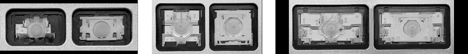 *Zdarza się, że w poszczególnych modelach klawiatury stosuje się więcej typów mocowań niż te trzy pokazane na zdjęciach; niektóre klawisze mają też metalowe zawiasy.