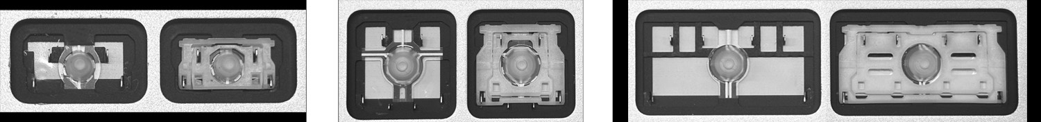 *Zdarza się, że w poszczególnych modelach klawiatury stosuje się więcej typów mocowań niż te trzy pokazane na zdjęciach; niektóre klawisze mają też metalowe zawiasy.