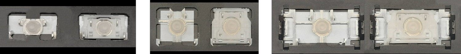 *Zdarza się, że w poszczególnych modelach klawiatury stosuje się więcej typów mocowań niż te trzy pokazane na zdjęciach; niektóre klawisze mają też metalowe zawiasy.
