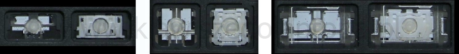 *Zdarza się, że w poszczególnych modelach klawiatury stosuje się więcej typów mocowań niż te trzy pokazane na zdjęciach; niektóre klawisze mają też metalowe zawiasy.
