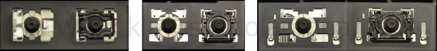 *Zdarza się, że w poszczególnych modelach klawiatury stosuje się więcej typów mocowań niż te trzy pokazane na zdjęciach; niektóre klawisze mają też metalowe zawiasy.