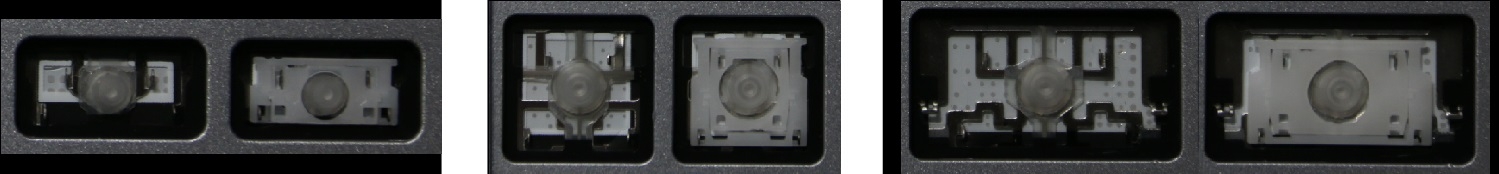 - Aby wybrać właściwy model, porównaj zdjęcie pustego miejsca na swojej klawiaturze ze zdjęciami poniżej, ewentualnie zdejmij klawisz „A” - pod nim zawsze jest zaczep średni.