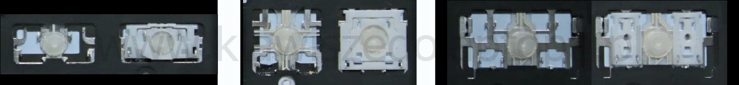 *Zdarza się, że w poszczególnych modelach klawiatury stosuje się więcej typów mocowań niż te trzy pokazane na zdjęciach; niektóre klawisze mają też metalowe zawiasy.