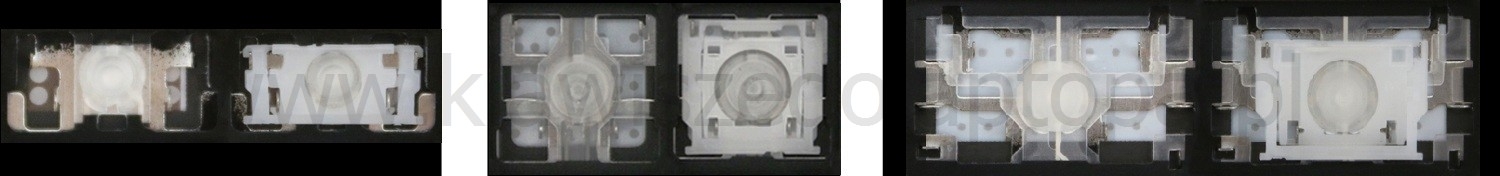 - W większości klawiatur wyglądających identycznie z zewnątrz stosowane były różne typy mocowań pod klawiszami.