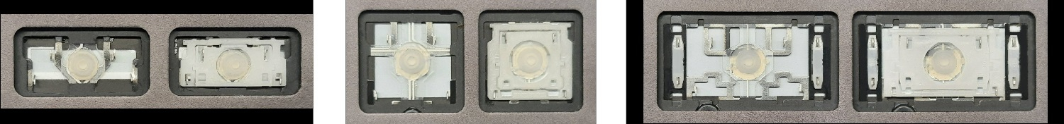 - Aby wybrać właściwy model, porównaj zdjęcie pustego miejsca na swojej klawiaturze ze zdjęciami poniżej, ewentualnie zdejmij klawisz „A” - pod nim zawsze jest zaczep średni.
