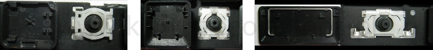 *Zdarza się, że w poszczególnych modelach klawiatury stosuje się więcej typów mocowań niż te trzy pokazane na zdjęciach; niektóre klawisze mają też metalowe zawiasy.