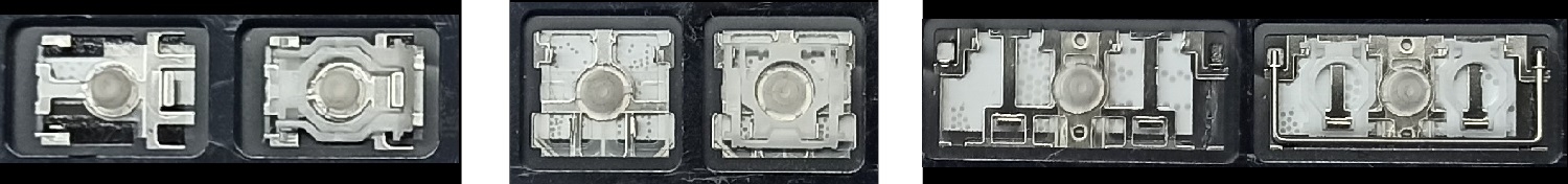 - W większości klawiatur wyglądających identycznie z zewnątrz stosowane były różne typy mocowań pod klawiszami.