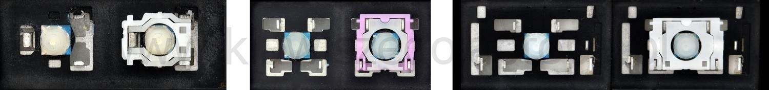 *Zdarza się, że w poszczególnych modelach klawiatury stosuje się więcej typów mocowań niż te trzy pokazane na zdjęciach; niektóre klawisze mają też metalowe zawiasy.