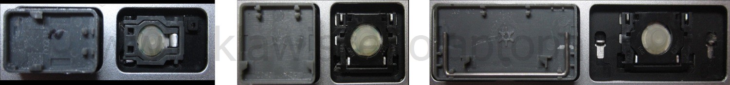 *Zdarza się, że w poszczególnych modelach klawiatury stosuje się więcej typów mocowań niż te trzy pokazane na zdjęciach; niektóre klawisze mają też metalowe zawiasy.