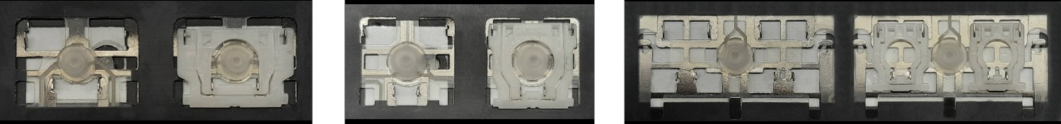- W większości klawiatur wyglądających identycznie z zewnątrz stosowane były różne typy mocowań pod klawiszami.