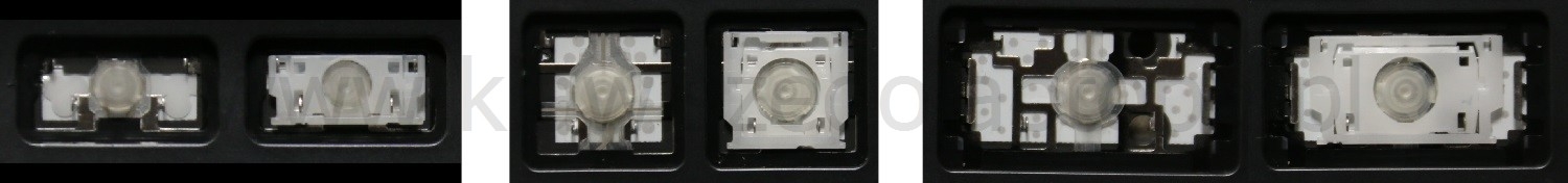 - W większości klawiatur wyglądających identycznie z zewnątrz stosowane były różne typy mocowań pod klawiszami.