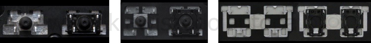 *Zdarza się, że w poszczególnych modelach klawiatury stosuje się więcej typów mocowań niż te trzy pokazane na zdjęciach; niektóre klawisze mają też metalowe zawiasy.