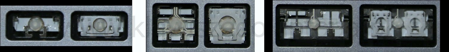 *Zdarza się, że w poszczególnych modelach klawiatury stosuje się więcej typów mocowań niż te trzy pokazane na zdjęciach; niektóre klawisze mają też metalowe zawiasy.