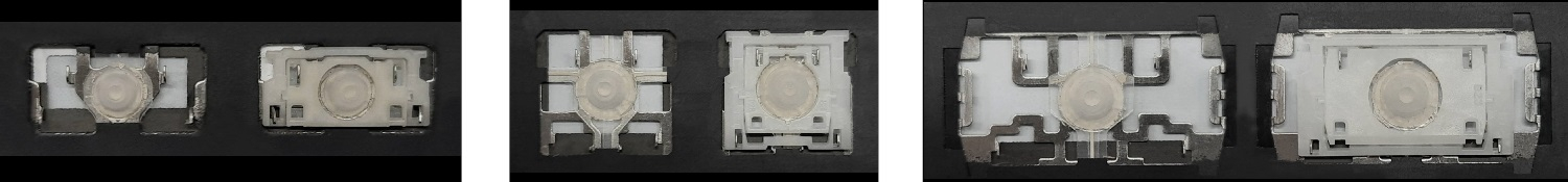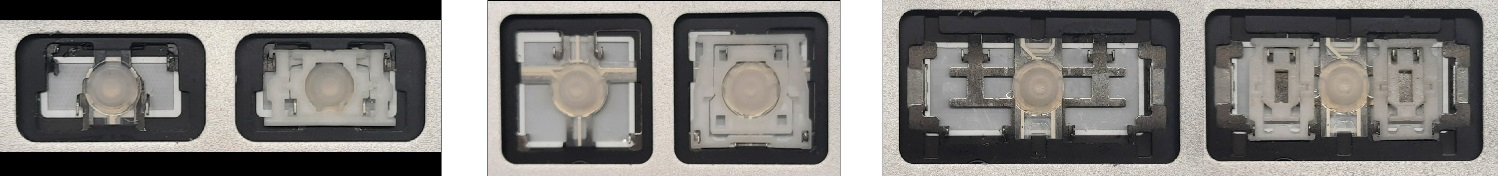 *Zdarza się, że w poszczególnych modelach klawiatury stosuje się więcej typów mocowań niż te trzy pokazane na zdjęciach; niektóre klawisze mają też metalowe zawiasy.