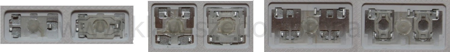 *Zdarza się, że w poszczególnych modelach klawiatury stosuje się więcej typów mocowań niż te trzy pokazane na zdjęciach; niektóre klawisze mają też metalowe zawiasy.