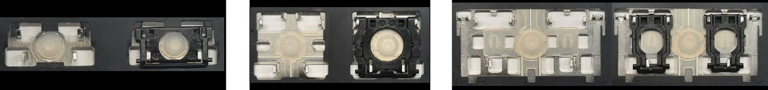 - W większości klawiatur wyglądających identycznie z zewnątrz stosowane były różne typy mocowań pod klawiszami.