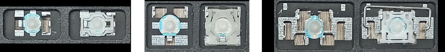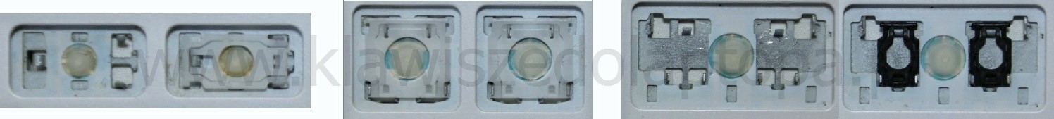 *Zdarza się, że w poszczególnych modelach klawiatury stosuje się więcej typów mocowań niż te trzy pokazane na zdjęciach; niektóre klawisze mają też metalowe zawiasy.