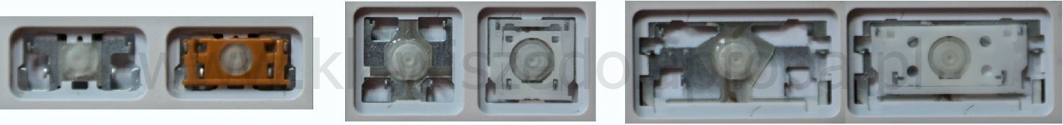 - W większości klawiatur wyglądających identycznie z zewnątrz stosowane były różne typy mocowań pod klawiszami.