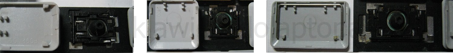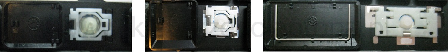 *Zdarza się, że w poszczególnych modelach klawiatury stosuje się więcej typów mocowań niż te trzy pokazane na zdjęciach; niektóre klawisze mają też metalowe zawiasy.