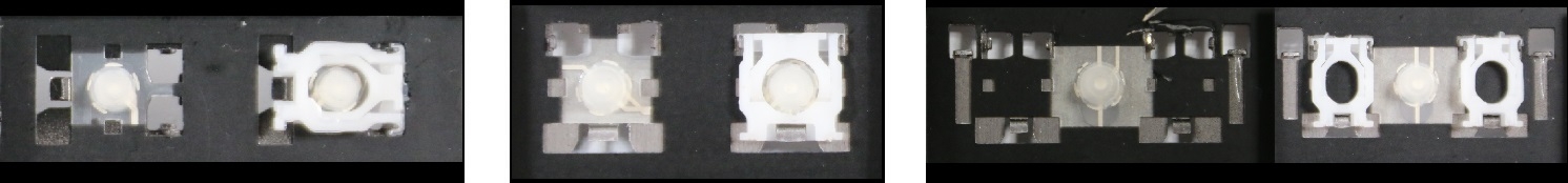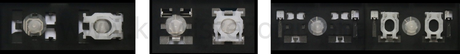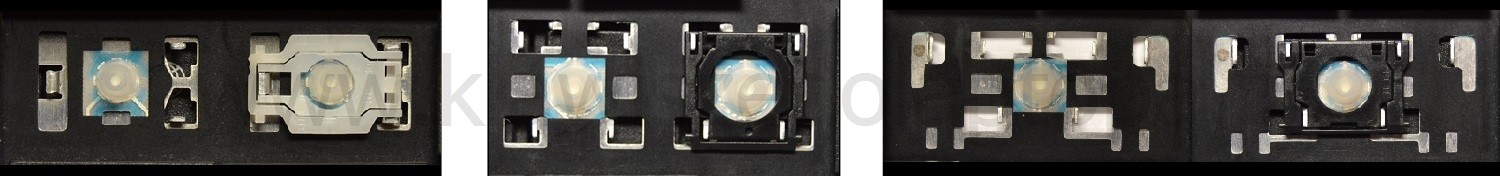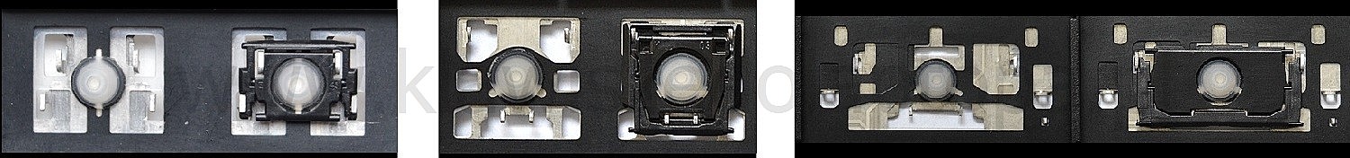 *Zdarza się, że w poszczególnych modelach klawiatury stosuje się więcej typów mocowań niż te trzy pokazane na zdjęciach; niektóre klawisze mają też metalowe zawiasy.