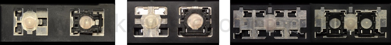 - W większości klawiatur wyglądających identycznie z zewnątrz stosowane były różne typy mocowań pod klawiszami.
