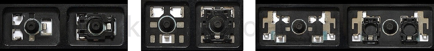 *Zdarza się, że w poszczególnych modelach klawiatury stosuje się więcej typów mocowań niż te trzy pokazane na zdjęciach; niektóre klawisze mają też metalowe zawiasy.
