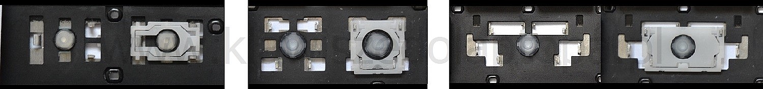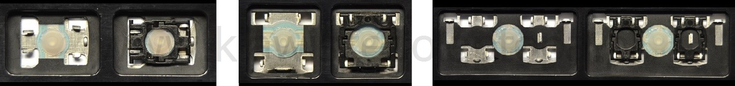 *Zdarza się, że w poszczególnych modelach klawiatury stosuje się więcej typów mocowań niż te trzy pokazane na zdjęciach; niektóre klawisze mają też metalowe zawiasy.