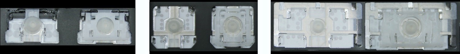 *Zdarza się, że w poszczególnych modelach klawiatury stosuje się więcej typów mocowań niż te trzy pokazane na zdjęciach; niektóre klawisze mają też metalowe zawiasy.