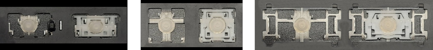 *Zdarza się, że w poszczególnych modelach klawiatury stosuje się więcej typów mocowań niż te trzy pokazane na zdjęciach; niektóre klawisze mają też metalowe zawiasy.