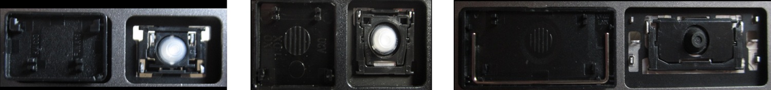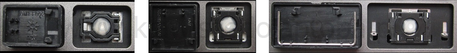 *Zdarza się, że w poszczególnych modelach klawiatury stosuje się więcej typów mocowań niż te trzy pokazane na zdjęciach; niektóre klawisze mają też metalowe zawiasy.