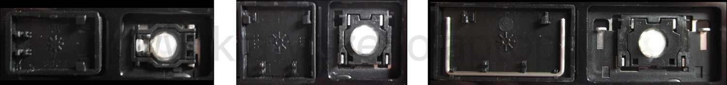 - Aby wybrać właściwy model, porównaj zdjęcie pustego miejsca na swojej klawiaturze ze zdjęciami poniżej, ewentualnie zdejmij klawisz „A” - pod nim zawsze jest zaczep średni.