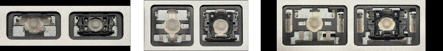 *Zdarza się, że w poszczególnych modelach klawiatury stosuje się więcej typów mocowań niż te trzy pokazane na zdjęciach; niektóre klawisze mają też metalowe zawiasy.