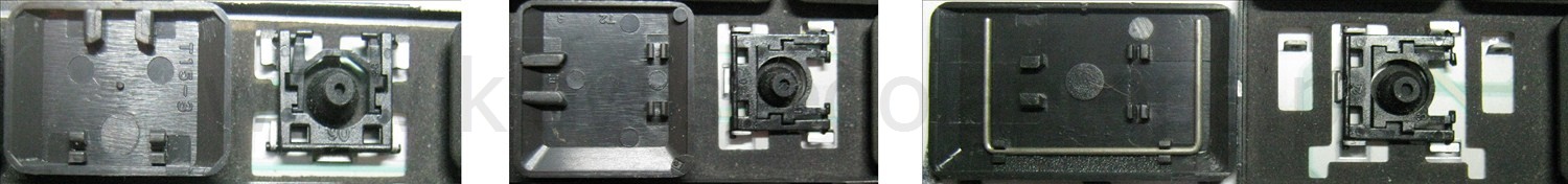 *Zdarza się, że w poszczególnych modelach klawiatury stosuje się więcej typów mocowań niż te trzy pokazane na zdjęciach; niektóre klawisze mają też metalowe zawiasy.