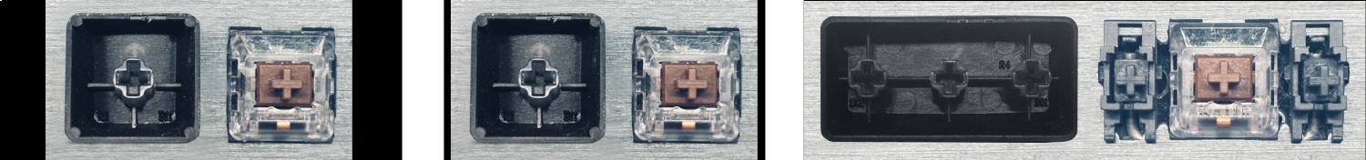 - W większości klawiatur wyglądających identycznie z zewnątrz stosowane były różne typy mocowań pod klawiszami.