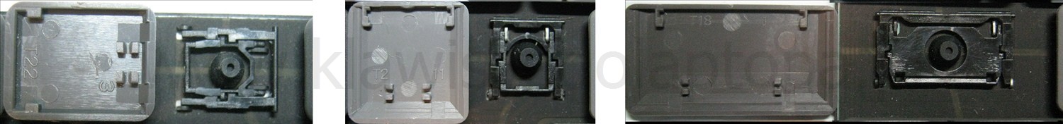 - W większości klawiatur wyglądających identycznie z zewnątrz stosowane były różne typy mocowań pod klawiszami.